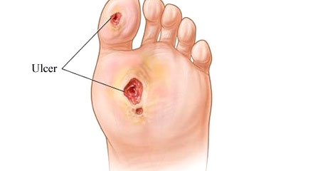 A diabetic foot ulcer is a common complication of diabetes and is a wound or open sore that develops on the foot of a person with diabetes. Diabetes can lead to a condition called peripheral neuropathy.