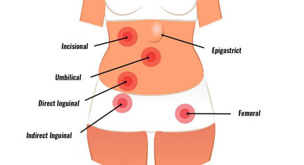 It occurs when an organ or tissue pushes through a weak spot or connective tissue that normally holds it in place. It can develop in various areas of body, but they commonly occur in abdominal wall.